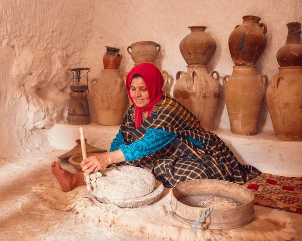 El cuscús es uno de los pilares de la tradición culinaria amazigh. La sémola de trigo se transforma en una base ligera y esponjosa que acompaña a verduras de temporada y carnes cocidas lentamente. Las especias, como la cúrcuma, el comino, el jengibre, la paprika, el cilantro y el perejil, impregnan cada bocado con aromas reconfortantes. Tradicionalmente, se sirve en reuniones familiares los viernes y en celebraciones, simbolizando la unión y la hospitalidad.
