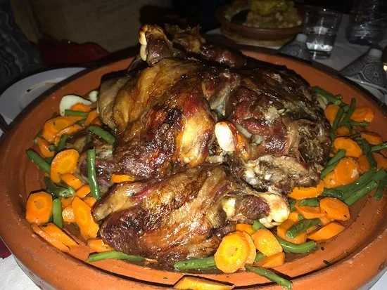 El mechoui es cordero o cabrito asado lentamente, tradicionalmente enterrado bajo brasas calientes o cocido en hornos de tierra. Las especias como la cúrcuma, el comino, el jengibre, la paprika, el cilantro y el perejil realzan el aroma de la carne, que queda tierna y jugosa. Se trata de un plato ceremonial, reservado para celebraciones importantes y reuniones familiares.